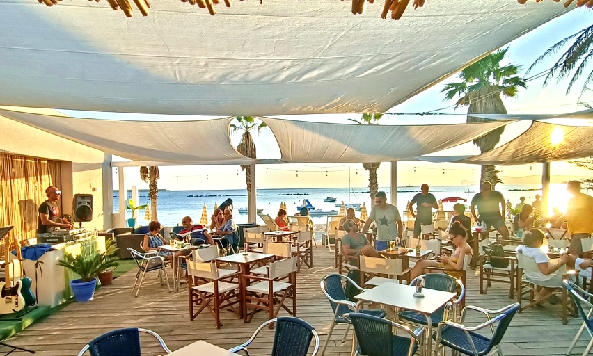 a bordo spiaggia propone invece colazione italiana e salata, pranzi leggeri, snack e una selezione di vini locali, cocktails e long drink.